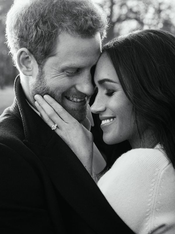 Om de wereld mee te laten genieten van hun liefde en verloving heeft het Britse koningshuis twee foto’s vrijgegeven van prins Harry en zijn aanstaande vrouw Meghan Markle. Het gaat om een geposeerde kleurenfoto en een iets minder formele zwart-witfoto.