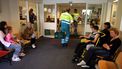 Wachtkamer dokter vol jongeren met oorsuizen / tinnitus: koptelefoon een van de redenen